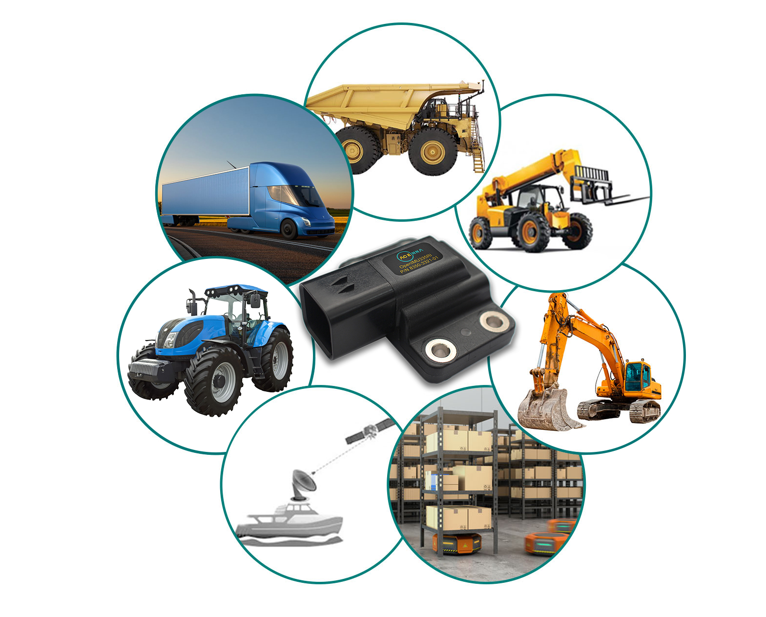 OpenIMU335RI is packaged in a rugged sealed housing with an Ampseal 16, 6 position connector. It includes CAN J1939 and RS232 interfaces for network connectivity. The miniature housing is formed using an over-molding process delivering a completely sealed solution which prevents any possible water ingress and is durable under tough environmental conditions. It is specified to work from an unregulated 9 V – 32 V supply and is fully qualified for use in 12 V and 24 V vehicle systems. A 3D magnetic field sensor is available as an option for applications requiring 9-DOF IMUs.